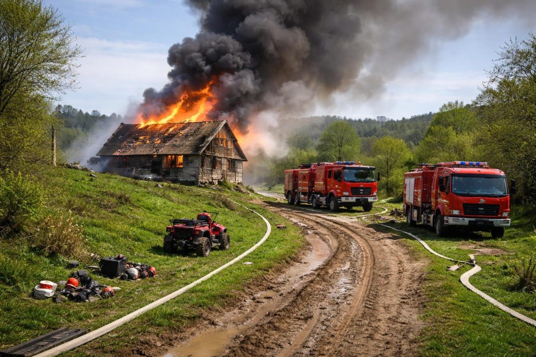 Joi, 23 aprilie 2026, un incendiu de proporții a izbucnit într-o locuință din satul Bonțești, comuna Cârligele, Vrancea. Potrivit ISU Vrancea, focul s-a extins rapid, iar intervenția a fost complicată de accesul dificil în zona de intervenție.